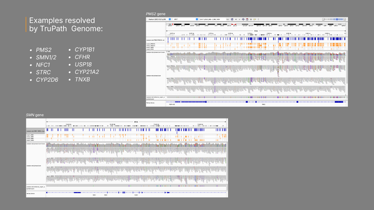TruPath Genome provides long-range genomic insights with ultra-long phasing and structural variant (SV) visualization. The solution reveals haplotype-resolved genomes and complex rearrangements.