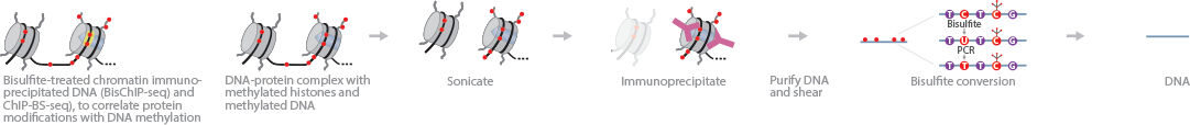 BisChIP-seq, ChIP-BS-seq, and ChIP-BMS all refer to essentially the same method. It is a direct, quantitative approach to assess DNA methylation patterns associated with chromatin modifications or chromatin-associated factors.1