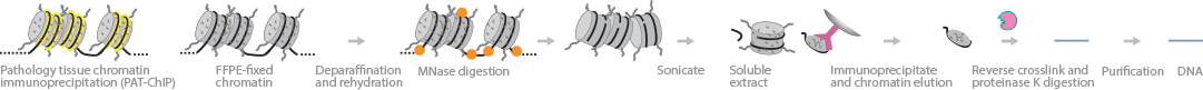 PAT-ChIP is a variation of ChIP-seq, optimized for the analysis of chromatin derived from FFPE samples. The distinguishing features of this method are dewaxing with Histolemon (Carlo Erba) followed by both MNase digestion and sonication. FiT-Seq introduced further refinements to this method.